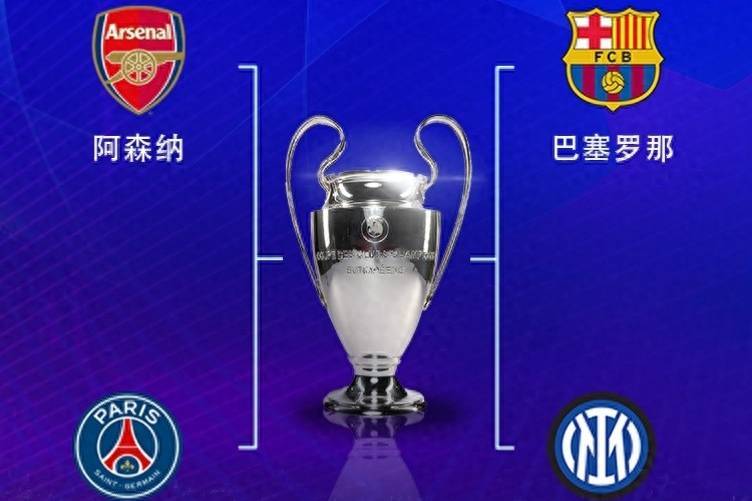 欧冠4强:阿森纳(英超第二)vs巴黎(法甲已提前夺冠),巴萨(西甲领头羊)vs国际米兰(意甲领头羊)。